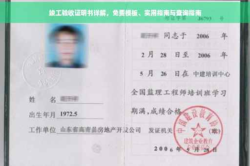 摘要:本文将详细介绍竣工验收证明书的重要性及其内容,提供免费的模板供读者使用,并给出实用指南。通过本文,读者可以了解到如何正确填写竣工验收证明书,以确保工程顺利完成并满足相关标准。本文还提供了免费的查询服务,方便读者获取更多关于竣工验收证明书的信息。