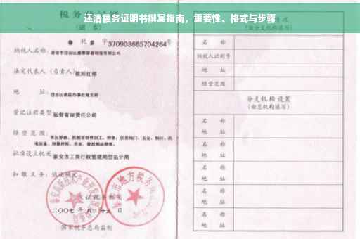 摘要:,,本文介绍了还清债务证明书的重要性,阐述了其作为证明个人或企业经济状况的关键文件的作用。文章还详细说明了如何撰写还清债的证明书,包括必要的信息要素和格式要求。通过本文,读者可以了解如何有效地证明已清偿债务,这对于个人信用建设和企业稳健发展具有重要意义。