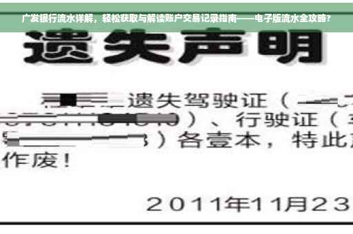 在现代社会,随着金融科技的飞速发展,银行业务的便捷性越来越高,广发银行作为国内领先的金融机构之一,为广大客户提供多元化的金融服务,流水账单是记录客户在银行交易活动的重要文件,本文将详细介绍如何轻松获取并解读广发银行的流水账单,帮助大家更好地管理个人财务。