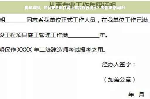 随着互联网的普及,越来越多的人开始在网上寻找各种信息,包括银行流水,在这个过程中,很多人可能会遇到风险和不安全因素,本文将为您揭示如何在网上找到安全的银行流水,帮助您避免不必要的麻烦和损失。