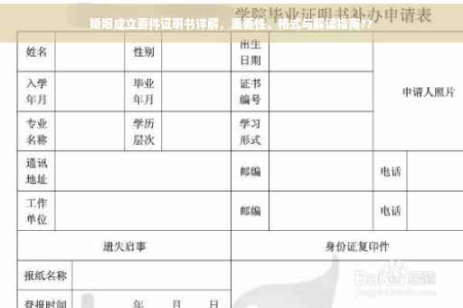 婚姻成立要件证明书是一份证明婚姻关系合法成立的法律文书,在现代社会,婚姻作为家庭的基础,其成立必须符合法律规定的条件和程序,本文将详细介绍婚姻成立要件证明书的作用、内容及其重要性,帮助大家更好地了解这一法律文书。