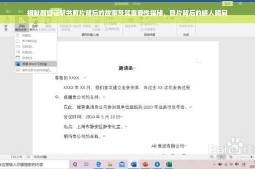 在当今社会,器官捐献已成为一种崇高的行为,为那些需要移植器官以维持生命的人们带来了希望,捐献器官的过程中,捐献器官证明书照片起到了至关重要的作用,本文将围绕这一主题展开,探讨捐献器官证明书照片的重要性,以及背后所蕴含的故事。