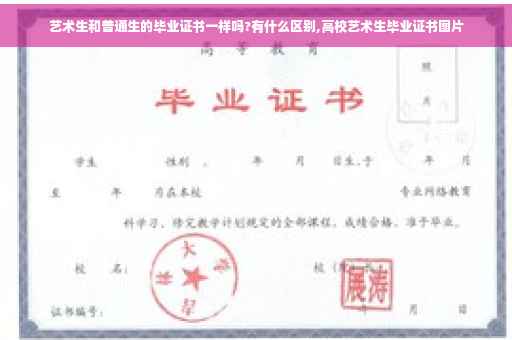 艺术生和普通生毕业证书基本一样,区别在于毕业专业不同,还有授予学位证书略有不同,艺术生的学位证书上标有授予艺术类学位,而普通文理科授予的学位是根据学类来授予学位。