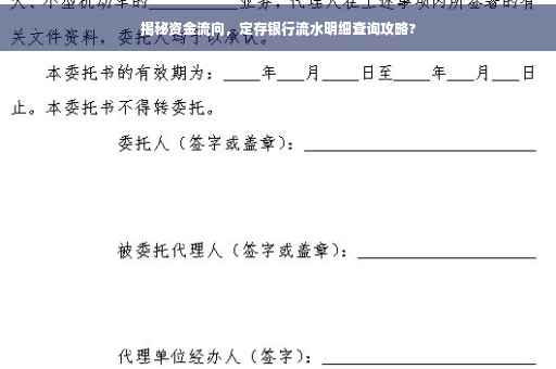 摘要:定存银行流水明细可助你洞悉资金流向,保障财务安全。查询流程简单快捷,包括登录银行官网、使用手机银行APP或前往银行柜台等方式。通过定期查看流水明细,你可以轻松掌握账户收支情况,及时发现异常,确保资金安全无忧。