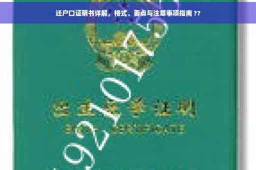 随着社会的不断发展,人口迁移现象日益普遍,迁户口是涉及到个人身份、户籍等重要信息变更的重要事项,本文将详细介绍迁户口证明书的格式及撰写注意事项,帮助大家顺利完成户口迁移手续。