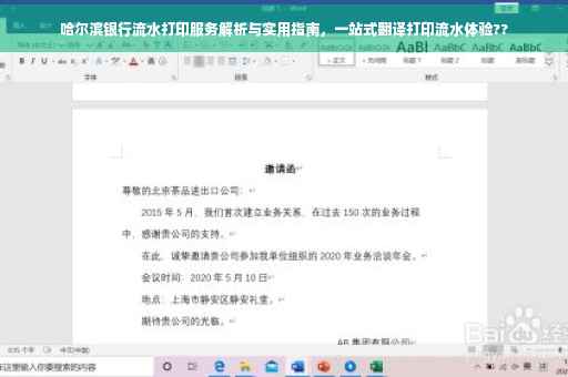 哈尔滨银行流水翻译是跨境业务中的重要服务,本文为市民提供了一站式服务与实用指南,希望市民在选择翻译机构、提交资料、验收成果等过程中,注意相关事项,确保翻译的准确性和合法性,如有任何疑问,可咨询专业的翻译机构或相关部门,还想提醒广大市民注意以下几点: