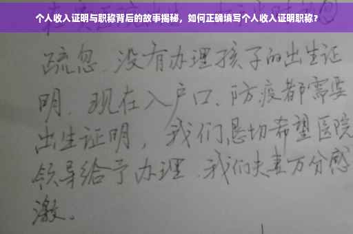 在当今社会,随着经济的不断发展和竞争的加剧,个人收入证明和职称成为了衡量一个人职业能力和社会地位的重要标准,越来越多的人开始关注这两个方面,希望通过提高自己的职业能力和获得更高的职称来提升个人收入,本文将深入探讨个人收入证明与职称之间的关系,帮助读者更好地理解这两者背后的故事。