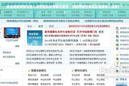 保险赔偿与收入证明之间存在一定的关联,在某些情况下,保险公司会要求投保人提供收入证明以计算赔偿金额、评估信誉和防止欺诈行为,投保人应了解这一流程,并按照保险公司的要求及时提供相关证明材料,以便顺利获得保险赔偿,希望本文能对大家有所帮助,如有任何疑问或困惑,建议及时与保险公司沟通,以确保自己的权益得到保障。
