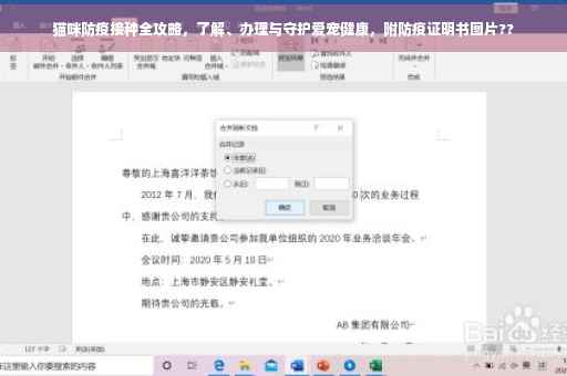 摘要:本文将详细介绍猫咪接种防疫证明书的相关知识,帮助您了解并为您的爱宠办理防疫证明。通过本文,您将了解到如何保护您的猫咪健康,包括疫苗接种的重要性、办理流程以及证明书的图片等相关信息。让我们一起关注猫咪的健康,为爱宠提供全面的保护。