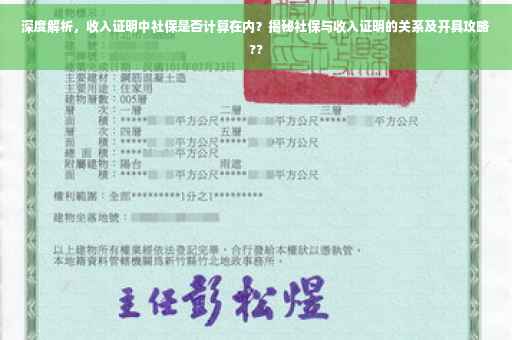 摘要:本文将探讨收入证明中是否包含社保,深度解析社保与收入证明之间的关联。文章将介绍如何开具收入证明,并解释社保作为收入的一部分在证明中的体现方式。本文还将提供关于如何正确处理社保与收入证明的实用建议。