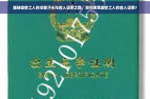 摘要:本文将揭示装修工人的收入证明背后的辛酸与汗水,介绍如何撰写装修工人的收入证明。文章将探讨装修工人的工作环境和艰辛,以及他们所面临的种种挑战。通过深入了解装修工人的收入状况,人们将更好地理解和尊重这个职业,并认识到他们所付出的努力和贡献。