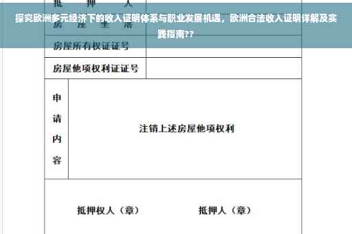 在当今全球化的时代,越来越多的人选择在欧洲这片充满机遇的土地上寻找工作和生活的梦想,在欧洲,合法收入证明是展示个人经济实力、保障合法权益的重要文件,本文将详细介绍欧洲各国合法收入证明的重要性、种类以及获取方式,帮助读者更好地了解欧洲的经济环境,为未来的职业发展铺平道路。