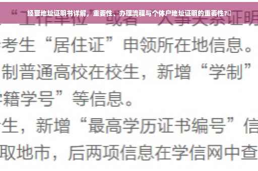 随着互联网经济的快速发展,越来越多的人选择自主创业,开设个人工作室、小型企业等,在这个过程中,经营地址证明书成为了必不可少的一项文件,本文将详细介绍经营地址证明书的重要性、办理流程、注意事项等,帮助广大创业者顺利办理相关手续,开展业务活动。