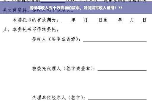 揭秘年收入五十万的背后故事与收入证明。收入证明是展示个人经济实力的重要文件,撰写时需严谨真实。本文将指导如何撰写一份年收入五十万的收入证明,包括关键信息如公司名称、部门、职位和具体收入等。本文将探讨高收入背后的辛勤付出和故事,提醒读者成功并非偶然,需付出努力与智慧。
