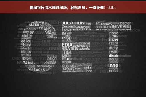 摘要:本文将揭示如何利用银行流水理财,助你轻松购房。通过了解银行流水的重要性,学习如何巧妙利用银行流水记录,提高贷款购房的成功率。本文还将介绍如何查询买房银行流水理财的详细步骤,助你顺利实现购房梦想。