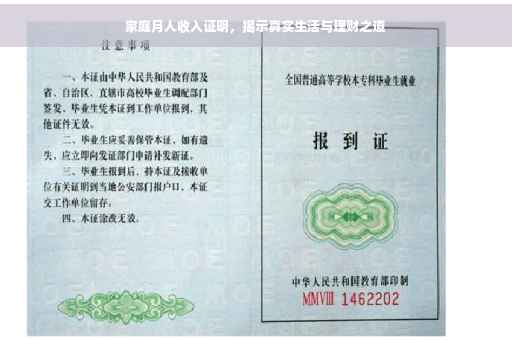 摘要:,,家庭月人收入证明是一份重要的文件,反映了家庭成员的真实收入状况和生活水平。通过了解家庭月收入情况,可以更好地掌握家庭财务状况,合理规划个人理财策略。这份证明揭示了家庭生活的实际情况,有助于家庭成员更好地管理自己的收入和支出,实现理财目标。通过科学理财,家庭可以更好地应对生活中的各种挑战,创造更美好的生活。