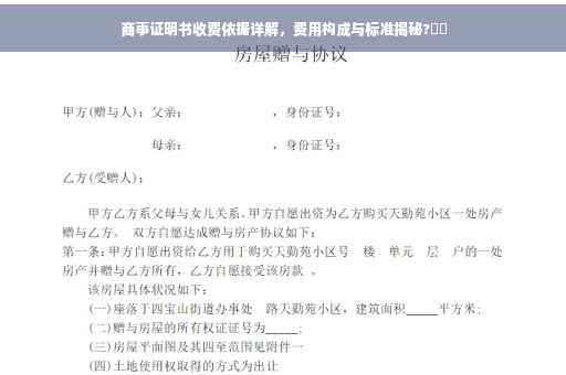 商事证明书的收费项目及标准因地区、行业、具体业务类型等因素而异,以下是一些常见的收费项目及示例性标准: