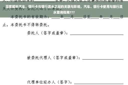 本文全面探讨了汽车、银行卡与银行流水之间的关联与影响,随着社会的不断发展和金融科技的创新,这三者之间的联系将更加紧密,银行将推出更多针对汽车消费的金融产品,以满足消费者的需求,通过对大数据的深入分析和应用,银行将能更准确地评估客户信用状况,为更多有需求的客户提供优质的汽车金融服务,希望读者通过本文能更好地理解这三者之间的联系和影响。