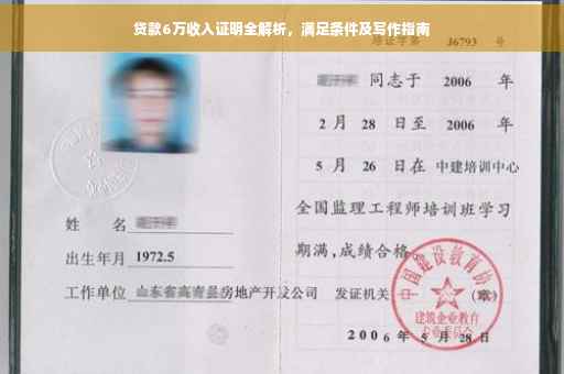 在当今社会,贷款已成为人们解决资金周转问题的常见途径,当您考虑申请6万贷款时,收入证明是银行审批贷款的重要考量因素之一,本文将为您详细介绍关于贷款6万收入证明的相关内容,助您更好地了解并顺利获得贷款。