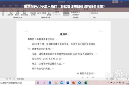 随着移动互联网的普及,越来越多的人开始使用银行APP来管理自己的财务,南京银行APP作为一款功能强大的移动金融应用,提供了丰富的服务,其中包括流水查询功能,本文将详细介绍南京银行APP流水查询功能的使用方法、注意事项以及常见问题解答,帮助用户更好地了解并高效使用这一功能。