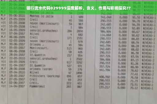 随着金融行业的飞速发展,银行流水已经成为我们日常生活中不可或缺的一部分,作为流水记录的重要组成部分,银行流水代码逐渐受到广泛关注,本文将重点以银行流水代码029999为例,帮助读者深入理解其含义、作用以及可能带来的影响。