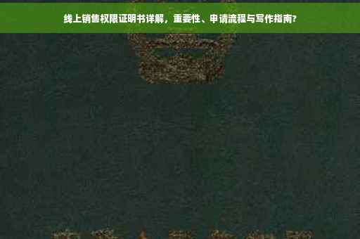 摘要:本文将详细介绍线上销售权限证明书的重要性,以及其申请流程的详细步骤。通过本文,读者将了解线上销售权限证明书在电商业务中的关键作用,以及如何准备和提交申请。本文将提供清晰的指导,帮助申请者高效地完成线上销售权限证明书的撰写和申请过程。