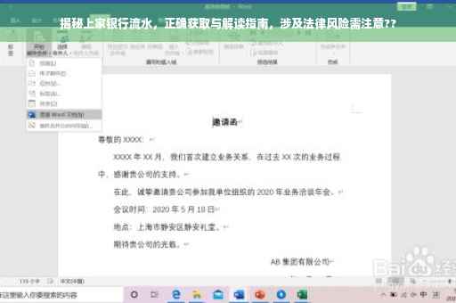 摘要:本文将探讨如何正确获取与解读上家银行流水,同时解答提供上家银行流水是否违法的问题。通过阅读本文,您将了解银行流水的含义、获取途径以及如何有效解读流水账单。我们将澄清关于提供银行流水的法律界限,以帮助您避免不必要的法律风险。