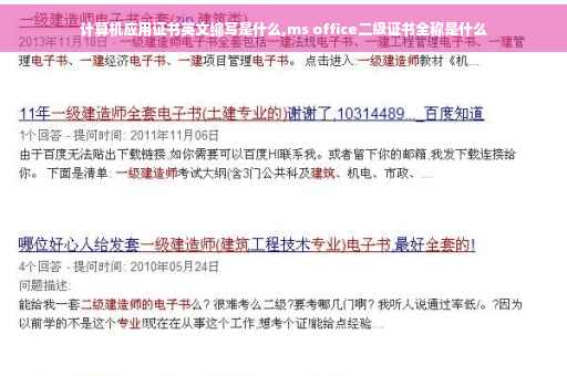全称是全国计算机二级MS Office高级应用,计算机二级MS office 高级应用与设计或者计算机二级WPS office高级应用与设计,是计算机二级项目中两种等级考试。计算机二级包含了很多类型的考试,比如二级Web程序设计、二级Java语言程序设计、二级C语言程序设计、二级Python语言程序设计等。