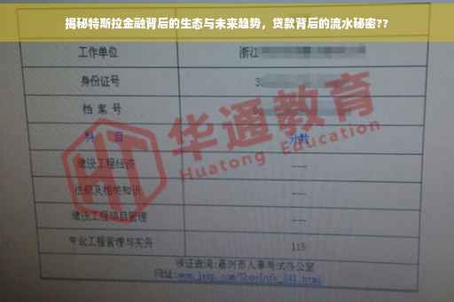 摘要:特斯拉金融银行流水揭示了其背后的金融生态和未来趋势。特斯拉贷款确实需要流水记录作为评估贷款资格的依据。随着特斯拉在金融领域的不断拓展,其金融生态逐渐完善,未来趋势也将更加多元化和智能化。特斯拉的金融战略对于整个汽车行业的金融发展具有启示意义。