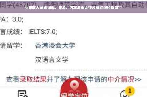 摘要:本文将详细介绍买车收入证明的来源、内容和重要性。买车收入证明是购车过程中的重要文件,它能够证明购车者的经济状况,帮助购车者获得贷款或享受优惠政策。本文将指导读者如何开具买车收入证明,并强调其重要性。通过本文,读者可以更好地了解买车收入证明的作用和获取方式。