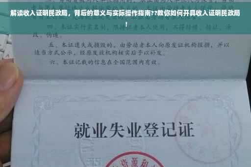 摘要:本文将解读收入证明在民政局的意义及实际操作指南。收入证明是证明个人经济能力的重要文件,对于办理多项事务如婚姻登记、申请救助等至关重要。本文将介绍如何开具收入证明,包括所需材料、流程、注意事项等,帮助读者顺利完成相关手续,避免因操作不当而耽误时间或造成不必要的麻烦。