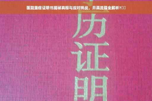 医院开具的重症证明书在患者的治疗和康复过程中具有重要地位,本文旨在为读者揭示真相,提供科学指导,帮助公众更好地了解和使用重症证明书,呼吁医院加强内部管理,提高服务质量,为患者的健康保驾护航。