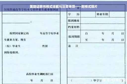 摘要:本文将详细介绍医院证明书的格式及注意事项,包括文字描述和格式图片。内容涵盖医院证明书的组成要素、书写规范、以及需要特别注意的细节,如证明书的真实性、准确性、完整性等。阅读本文,您将了解如何正确撰写医院证明书,避免因格式或内容错误导致的不必要的麻烦。