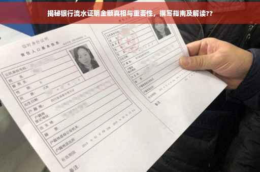 在当今社会,随着经济的发展和金融市场的繁荣,银行流水证明在我们的日常生活中扮演着越来越重要的角色,无论是办理贷款、信用卡,还是证明个人经济实力,银行流水证明都是一项重要的证明材料,很多人对于银行流水证明金额的理解并不深入,只是简单地知道它代表自己在银行的资金流动情况,本文将详细解读银行流水证明金额的内涵,以及其在各个领域的应用和重要性。