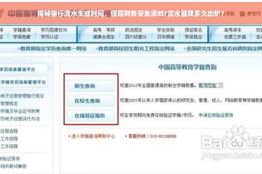 摘要:本文将探讨银行流水的最晚时间问题,旨在帮助读者了解银行流水的时间限制,以保障个人财务安全。文章将简要介绍银行流水的重要性,并阐述不同银行处理流水账单的时间差异。通过了解银行流水的时间范围,读者可以更好地管理个人财务,确保及时获取财务信息,从而做出明智的财务决策。