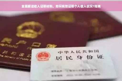 摘要:,,本文将全面解读如何有效证明个人收入状况,包括收入来源证明材料。通过提供工资流水、劳动合同、税务证明等文件,展示个人的收入来源。对于其他收入如投资收益、兼职收入等,需提供相关证明文件如银行交易记录、税务申报表等。本文旨在帮助读者了解如何准确、全面地证明自己的收入状况,确保材料的真实性和有效性。