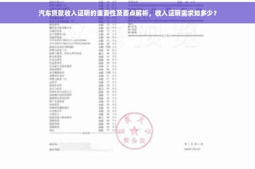 在当今社会,汽车已成为人们生活中不可或缺的交通工具,对于许多人来说,购买汽车需要贷款支持,在申请汽车贷款时,收入证明是一个重要的环节,本文将详细解析汽车贷款收入证明的重要性、种类、格式要求以及注意事项,帮助大家更好地了解和应对这一环节。