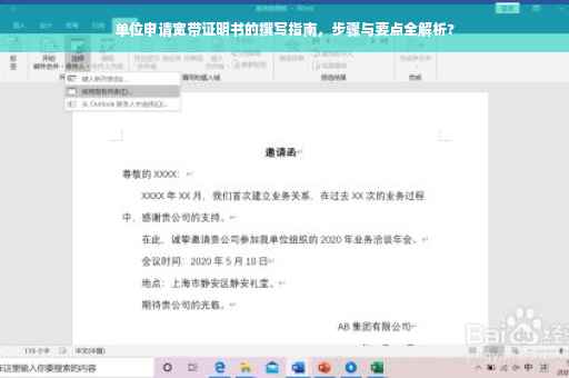 摘要:,,本文是关于单位申请宽带的证明书撰写指南。文中简要介绍了证明书的目的和重要性,指导单位如何正确填写申请宽带证明书。内容包括证明书的开头、主体部分和结尾,需涵盖单位基本信息、申请宽带的理由、用途及预期效果等。提醒单位在撰写过程中注意格式规范、语言简洁明了。单位申请宽带证明书应确保准确表达需求,以便顺利获得宽带服务。