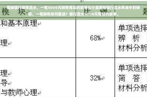 摘要:本文将揭示银行转账流水的秘密,通过解析一笔5000元的转账背后的故事,让读者了解银行流水账单中的细节。本文将介绍如何计算银行流水中的一笔转账,并解释相关的金融知识。通过阅读本文,您将更好地了解银行流水账单的重要性以及如何正确解读其中的信息。