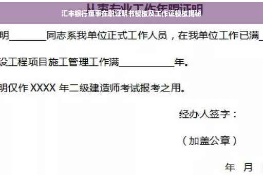 摘要:,,本证明书旨在确认某人在汇丰银行担任董事职务的事实。该工作证模板包含了个人姓名、职务、所在部门、工作地点以及工作期限等基本信息。此证明书用于证明该董事在汇丰银行的在职状态,以作为正式的工作证明文件使用。
