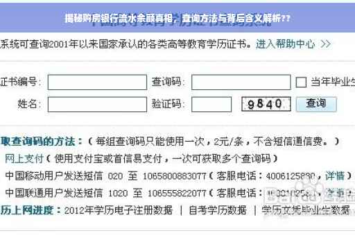 摘要:购房时银行流水余额是评估个人贷款能力和信用状况的重要指标之一。本文将揭示购房银行流水余额背后的真相,并介绍如何查询银行流水余额。通过简单的步骤,您将能够了解自己的银行流水状况,为购房贷款做好准备。注意,确保查询过程合法合规,保护个人隐私。