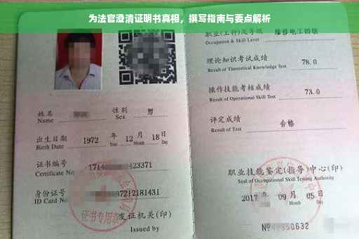 摘要:本文旨在阐述如何为法官澄清证明书背后的真相。本文将介绍证明书澄清的流程和要点,包括详细阐述证明书的背景、目的和内容,以及澄清过程中需要注意的关键点。通过本文的指导,读者可以了解如何撰写一份有效的澄清证明书,为法官提供真实、准确的信息,确保公正、公平的司法程序。本文旨在为法律从业者或相关人士提供实用的指导和建议。