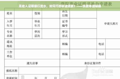 在当今社会,经济压力日益增大,许多人面临资金周转困难的问题,在申请贷款时,一些人可能因无法提供银行要求的收入证明和银行流水而陷入困境,本文将为你提供实用的建议,帮助你解决这一问题。