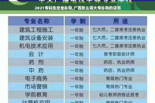大家好,关于广西怎么领大专补贴的证书的问题,于是小编就整理了5个相关介绍广西怎么领大专补贴的证书的解答,让我们一起看看吧。