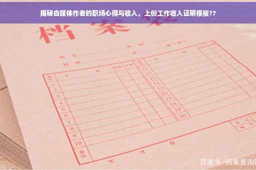 作为一名自媒体作者,我历经自媒体行业的无数挑战与机遇,终于找到了属于自己的一片天地,在这篇文章中,我将分享我的上份工作收入证明,并谈谈自己的职场心得和感悟,希望能为正在奋斗中的你带来一些启示与鼓励。
