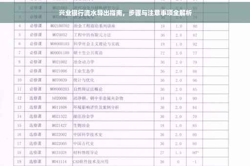 随着电子商务和移动支付的普及,越来越多的人开始关注自己的资金流动情况,兴业银行作为国内领先的金融机构之一,其服务深受广大客户青睐,在日常生活中,我们有时需要导出银行流水记录,用于贷款、报销、财务统计等场合,本文将详细介绍兴业银行流水的导出方法,包括步骤和注意事项,帮助大家轻松完成流水导出。