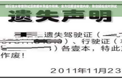 摘要:本文介绍了银行流水审查测试的内容,包括深度解析与操作指南。通过本文,您将了解银行流水审查测试的目的、流程、注意事项以及实际操作步骤。本文旨在帮助读者更好地理解银行流水审查测试,以便更好地管理个人财务和信用状况。
