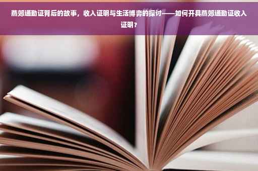 燕郊通勤证是指在特定区域内,允许居民在工作日上下班高峰时段进入城市中心的一种证件,这一证件的办理往往需要提供收入证明,以证明持证人有足够的经济能力在郊区生活,并有能力支付通勤费用,收入证明作为办理燕郊通勤证的重要依据之一,体现了现代都市生活中经济能力与生活质量的平衡关系。