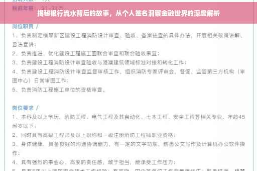 深入了解银行流水的奥秘,从个人签名到金融世界的深度洞察,有助于我们更好地管理个人财务、规划投资策略以及评估企业信用状况,让我们共同关注银行流水的变化与发展趋势,为未来的金融发展做好准备。