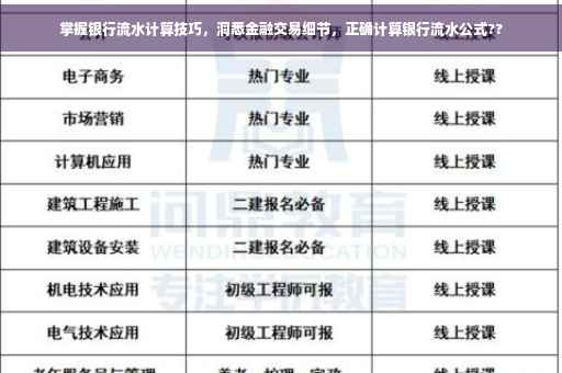在当今社会,随着金融行业的快速发展,越来越多的人开始关注银行流水,银行流水是指个人或企业在银行交易过程中产生的资金流入和流出记录,对于个人而言,掌握算银行流水公式能够更好地了解自己的财务状况,做出更明智的投资决策,本文将详细介绍算银行流水的公式及其实际应用,帮助读者更好地掌握这一技能。